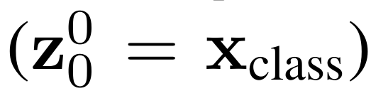 BERT 모델의 [CLS] 토큰과 유사한 x_class 토큰이 있고, 모든 트랜스포머 레이어를 통과한 인코더의 아웃풋( z₀ᴸ)