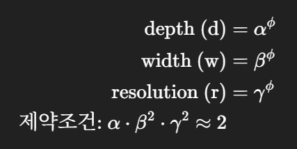 α,β,γ: 너비, 깊이, 해상도에 대한 가중 비율