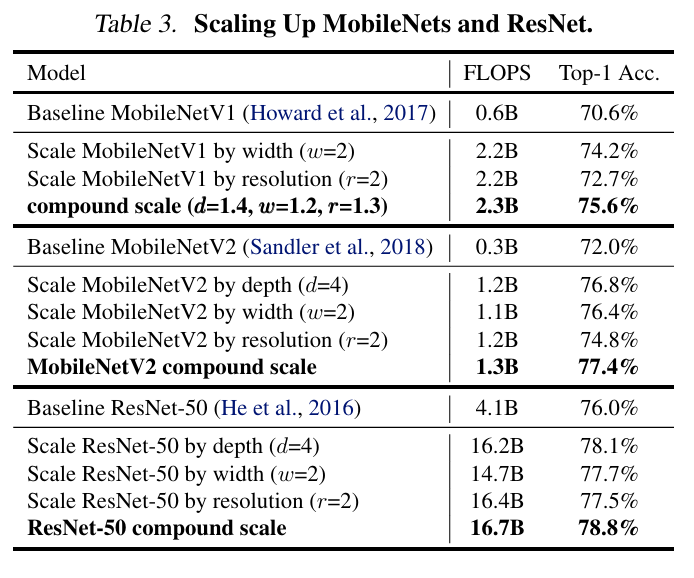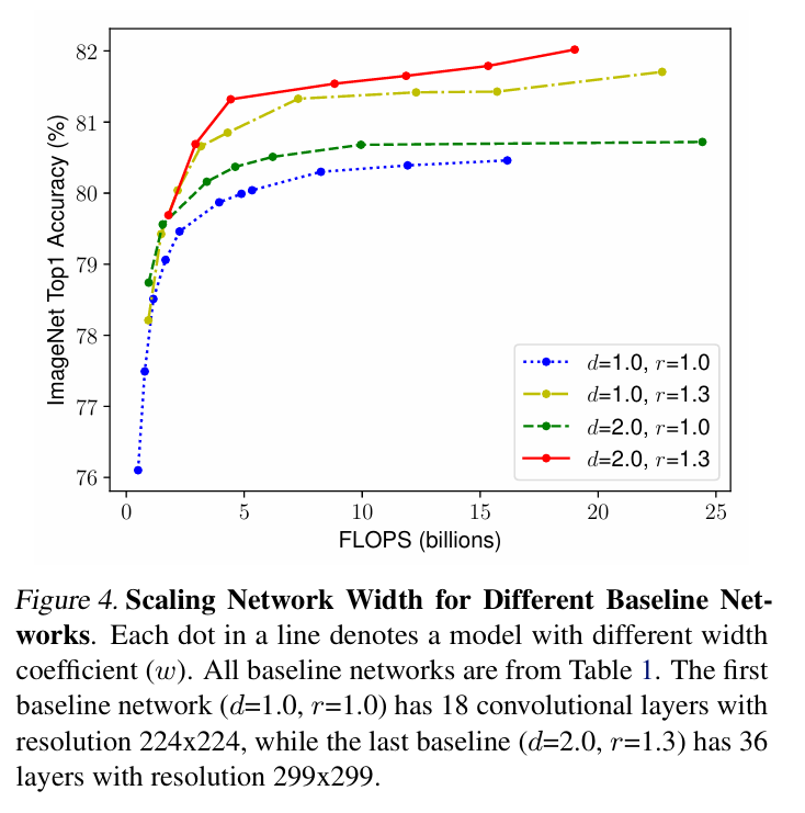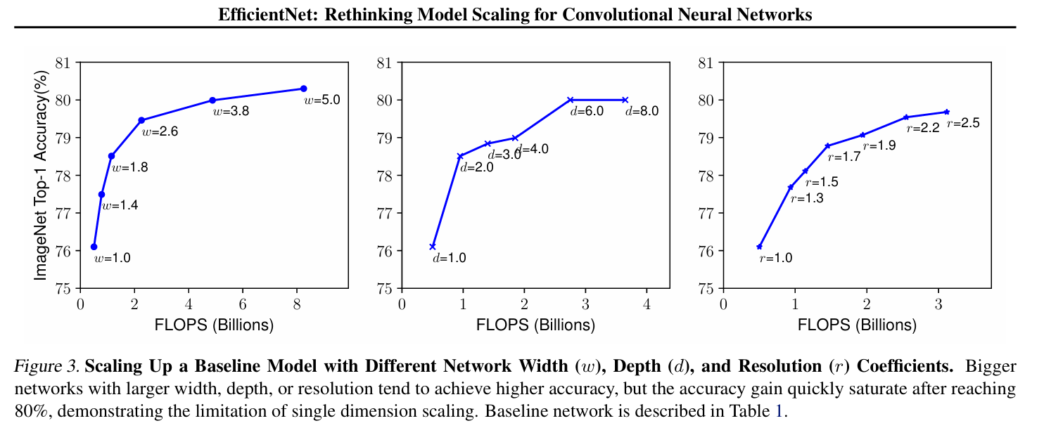"너비(width), 깊이(depth), 해상도(resolution) 중 하나만 키워도 정확도는 올라가지만,